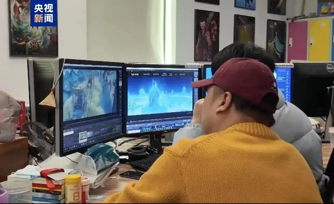 《哪吒2》壯觀的特效背后,是全國138家動畫公司的合力托舉。圖為創(chuàng)作團(tuán)隊(duì)正在確認(rèn)畫面效果。