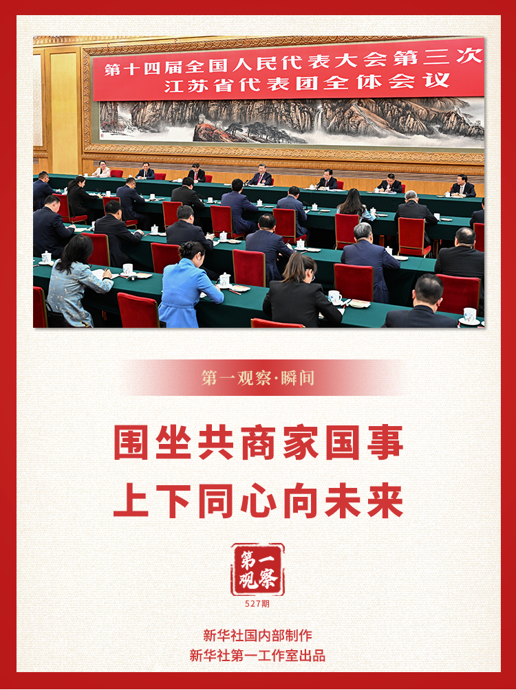人民大會(huì)堂東大廳燈光璀璨,暖意融融?;刈中蔚臅?huì)議桌旁,代表們踴躍發(fā)言,總書記用心傾聽。