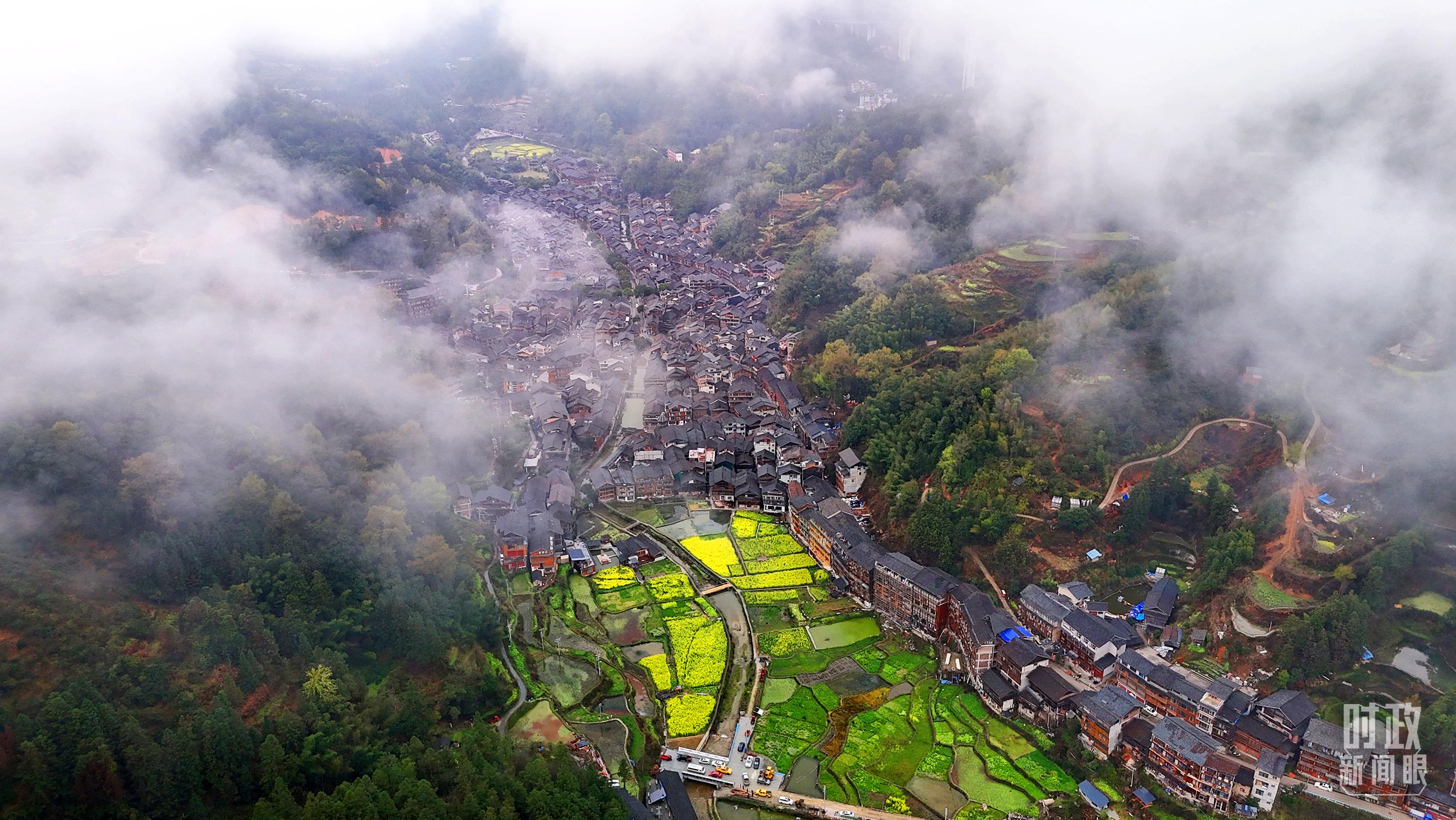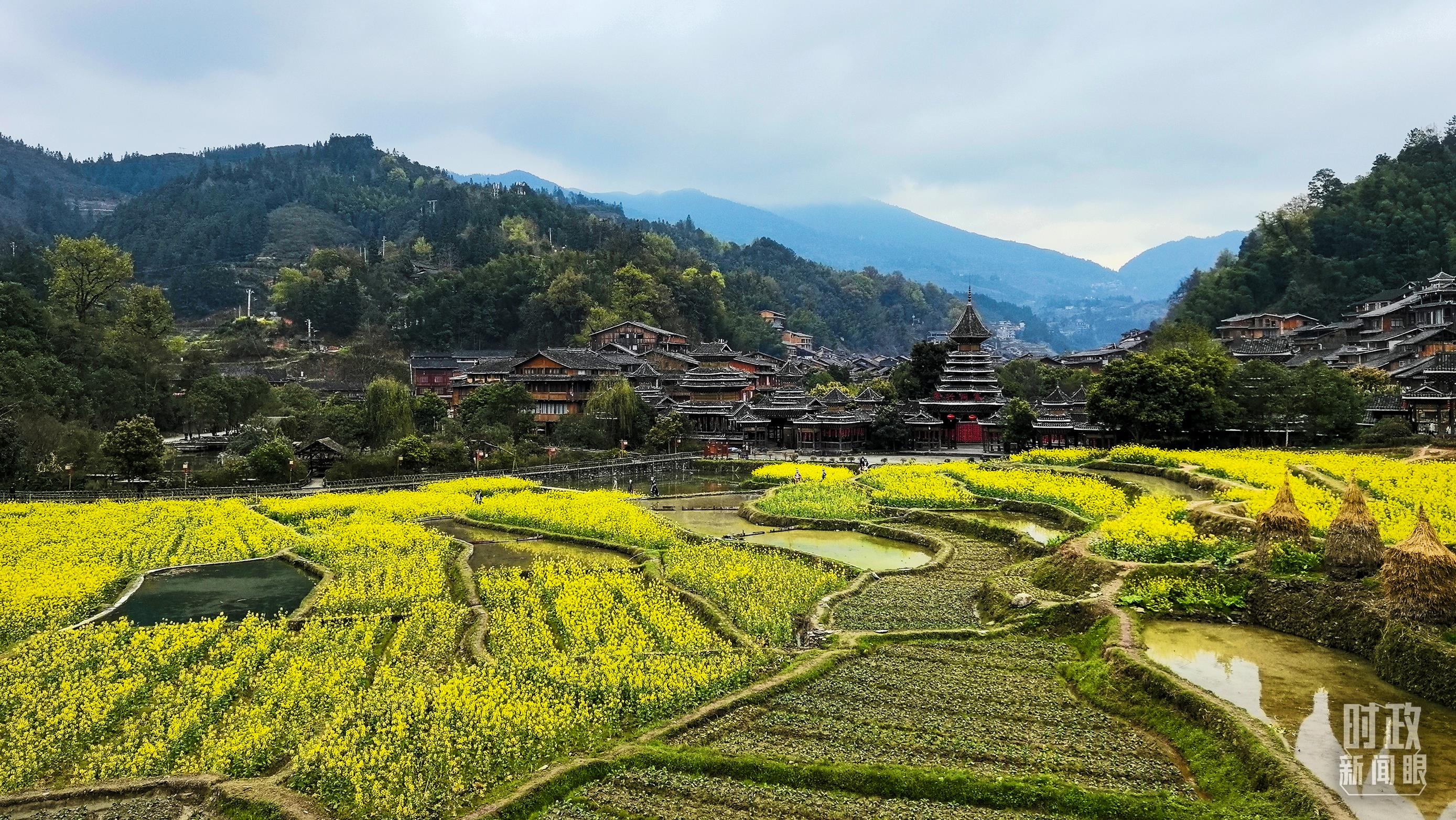 春日的肇興侗寨,油菜花競相綻放。(總臺央視記者程鋮拍攝)
