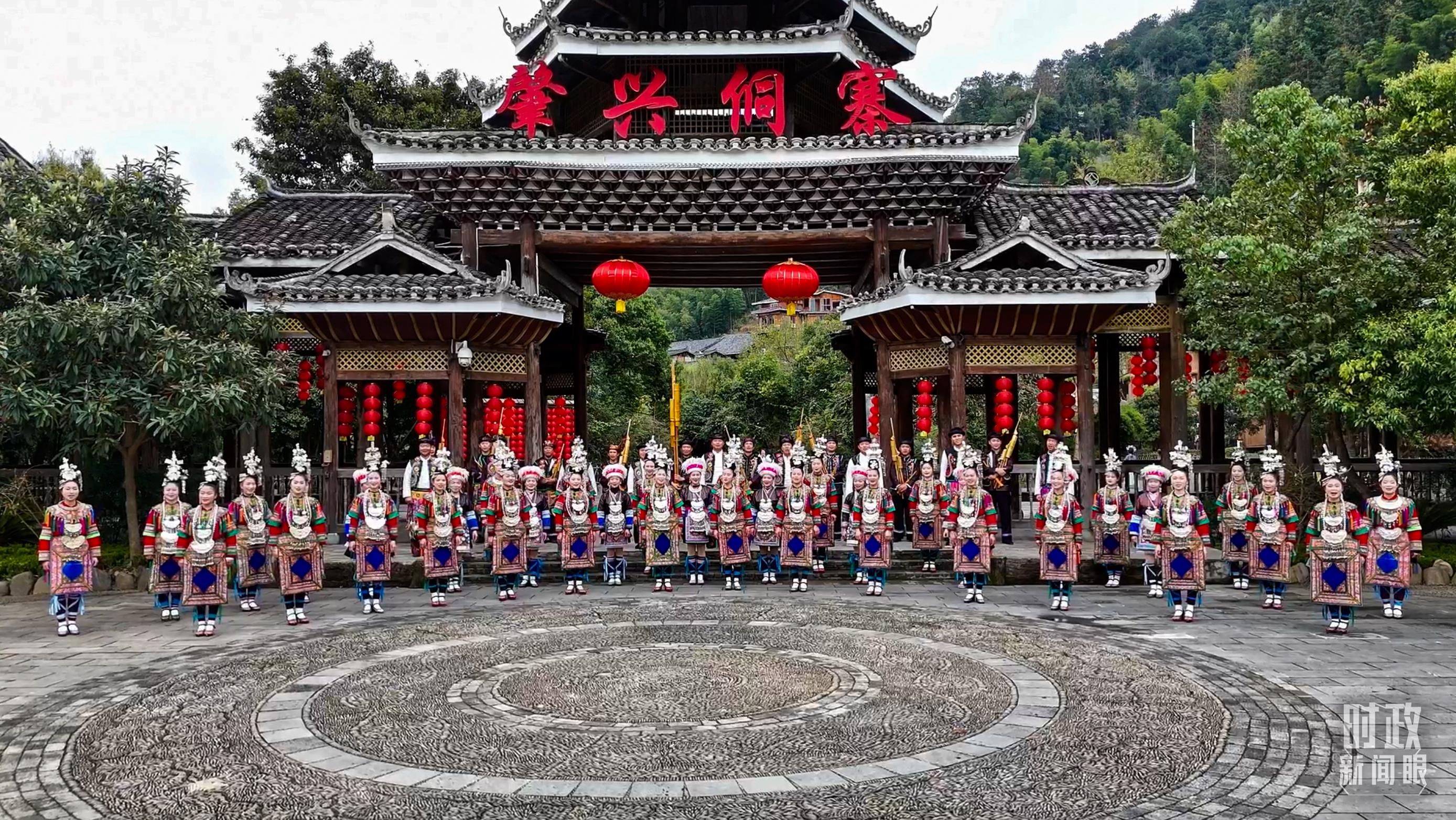 寨門處,鄉(xiāng)親們身著傳統(tǒng)服飾,唱起侗族大歌,歡迎遠方的來客。(總臺央視記者范凱拍攝)