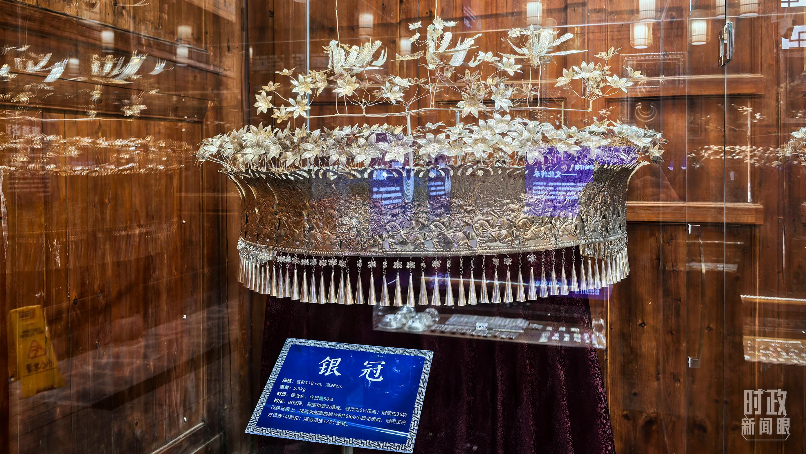 銀飾是侗族婦女的重要裝飾。圖為展示中心內(nèi)的銀冠。(總臺央視記者鄂介甫拍攝)