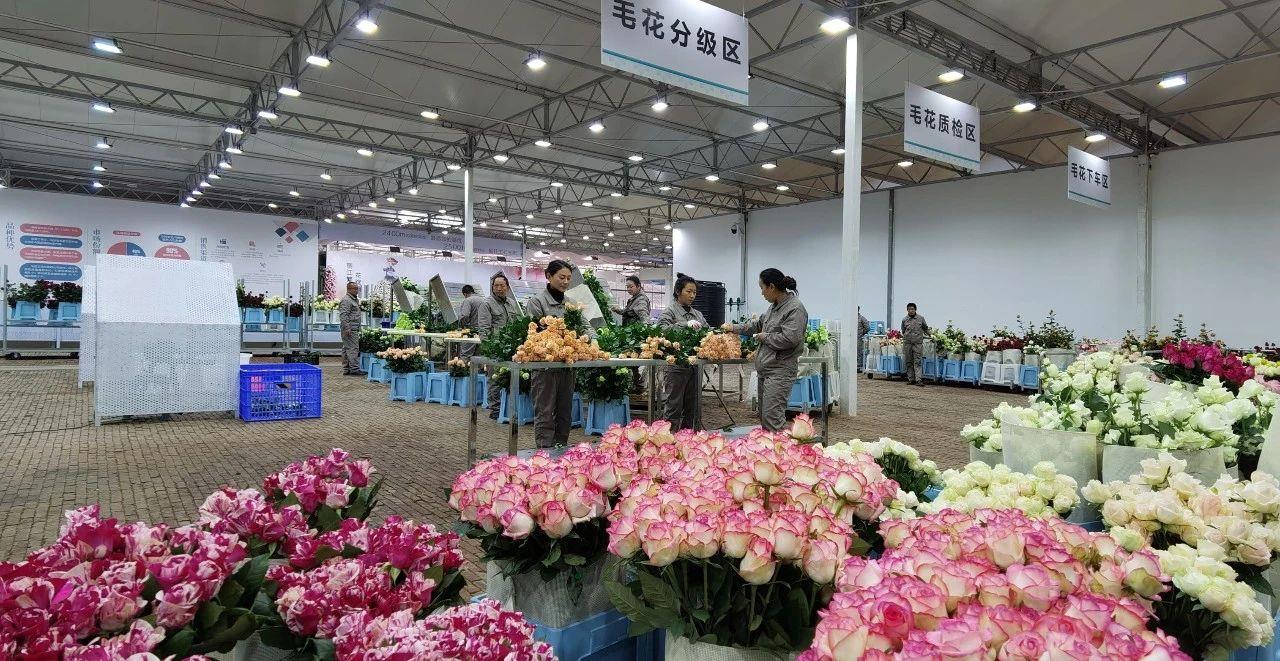 △云南麗江現(xiàn)代花卉產(chǎn)業(yè)園內(nèi),工人正在分類(lèi)整理鮮花。
