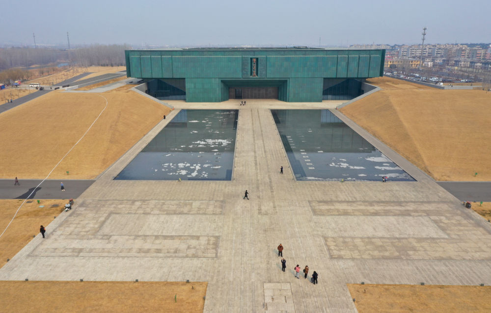 “商邑翼翼,四方之極。”位于太行山東麓的河南安陽小屯村一帶,是殷墟遺址所在地。三千多年前,繁盛的城市文明、舉世矚目的文字文明以及高度發(fā)展的手工業(yè)等,共同構(gòu)筑了早期中國的華彩篇章。2024年2月,殷墟博物館新館正式開館,成為首個(gè)全景式展現(xiàn)商文明的國家重大考古專題博物館(2025年2月21日攝,無人機(jī)照片)。