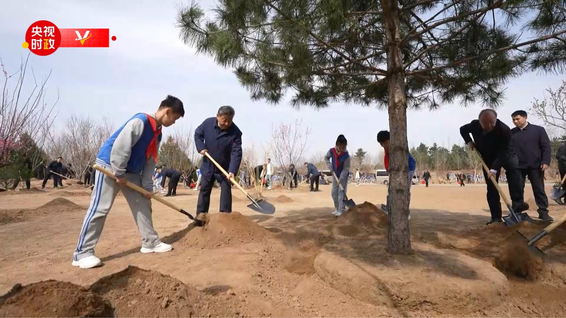 4月3日,習(xí)近平等黨和國家領(lǐng)導(dǎo)人來到北京市豐臺區(qū)永定河畔,同干部群眾一起參加義務(wù)植樹。