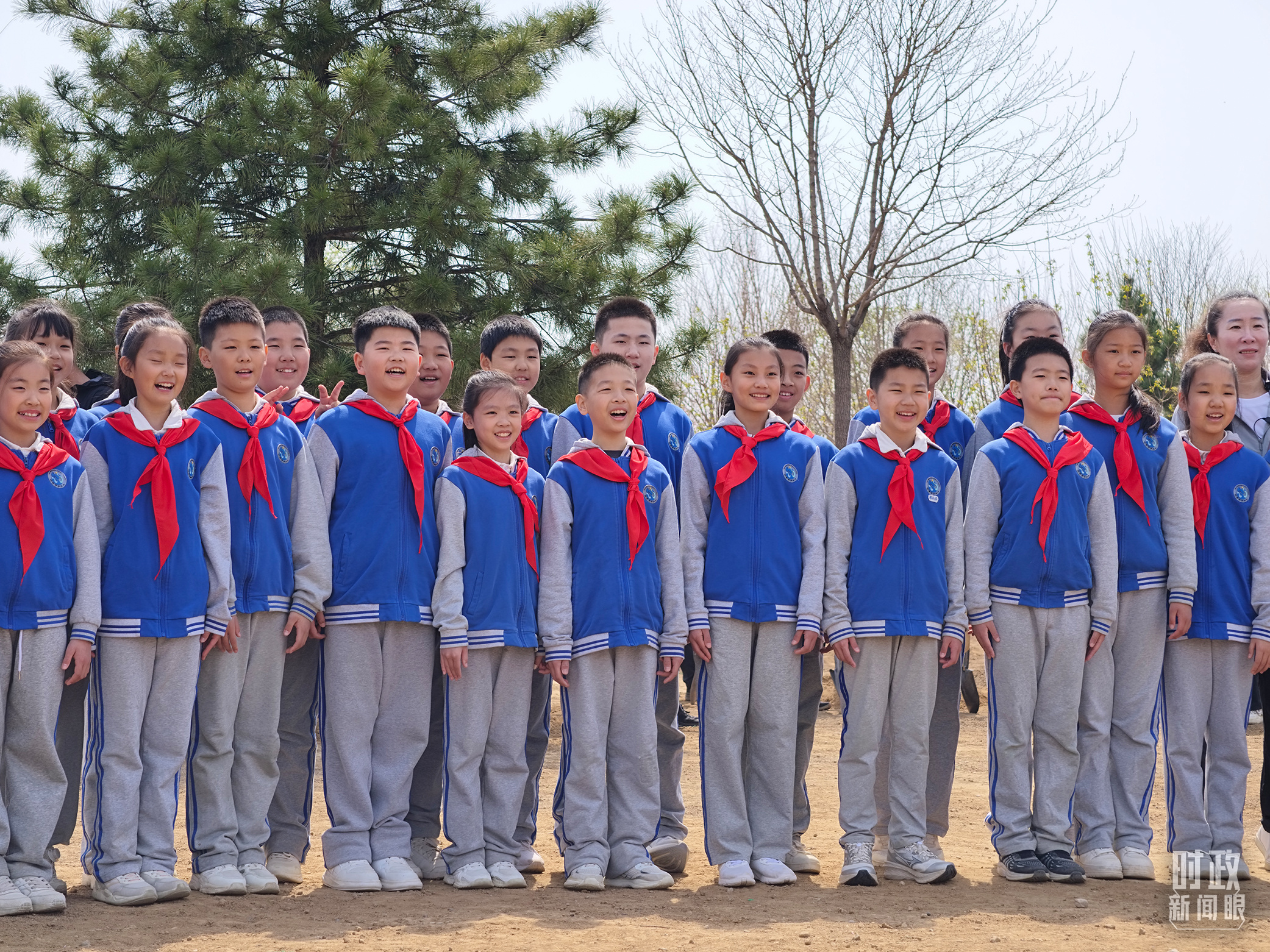△植樹現(xiàn)場的少先隊員。(總臺央視記者韓銳、趙龍拍攝)