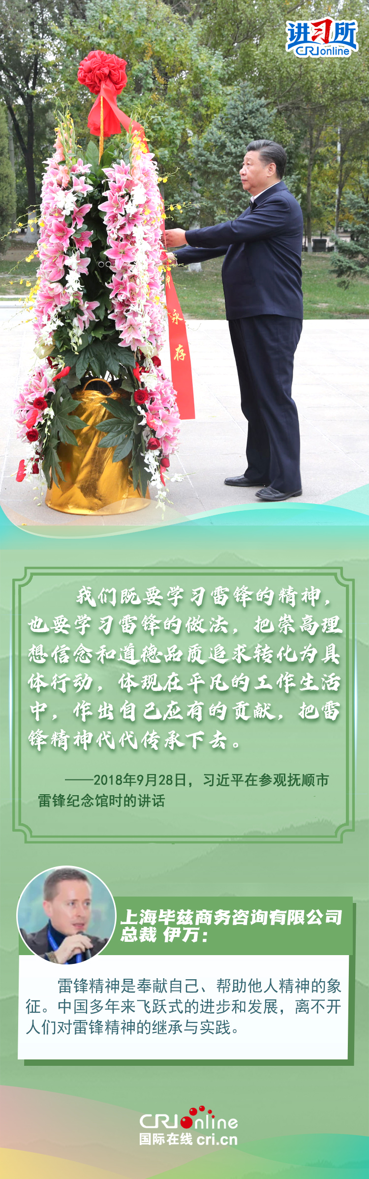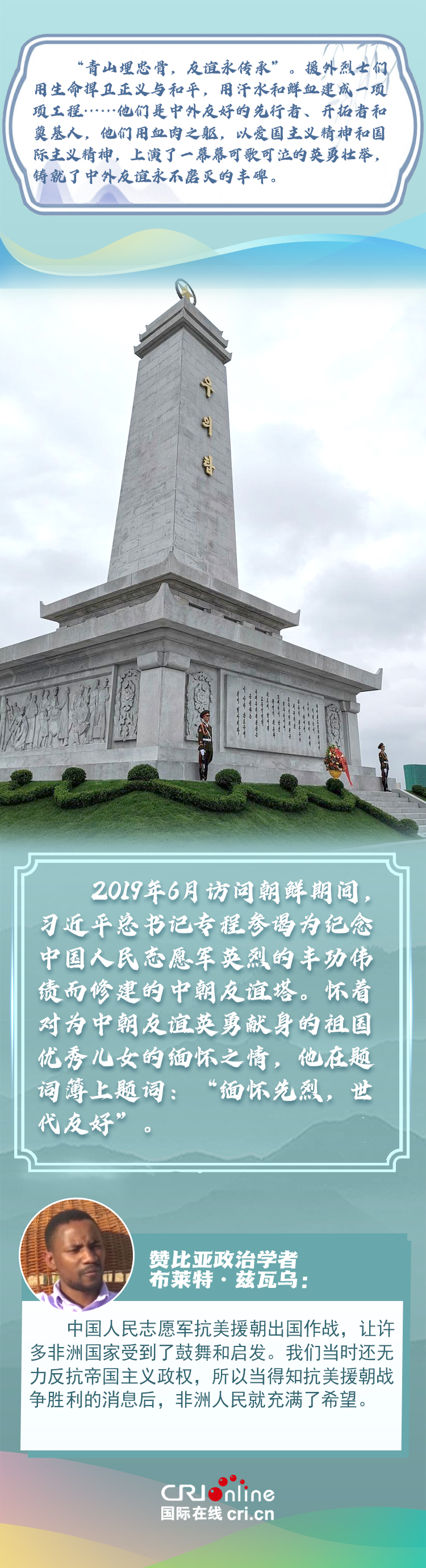 新時(shí)代以來(lái),從設(shè)立烈士紀(jì)念日到出臺(tái)英雄烈士保護(hù)法,再到加強(qiáng)烈士紀(jì)念設(shè)施保護(hù),中國(guó)崇尚英雄、學(xué)習(xí)英雄的社會(huì)風(fēng)尚贏得國(guó)際社會(huì)贊譽(yù)。在國(guó)際人士眼中,中國(guó)多年來(lái)飛躍式的進(jìn)步和發(fā)展,離不開(kāi)人們對(duì)先輩意志的繼承與實(shí)踐。