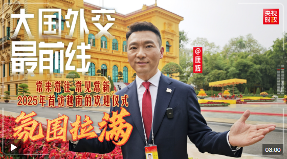 黃色的標志性建筑,交相輝映的五星紅旗和金星紅旗,手持中越兩國國旗的小朋友……有沒有一種熟悉又親切的感覺?時隔一年多,習(xí)近平再次訪越,恰似走親戚、串門般自然。快跟“大國外交最前線”的腳步,一同前往歡迎儀式現(xiàn)場,感受這份熱烈與友好!