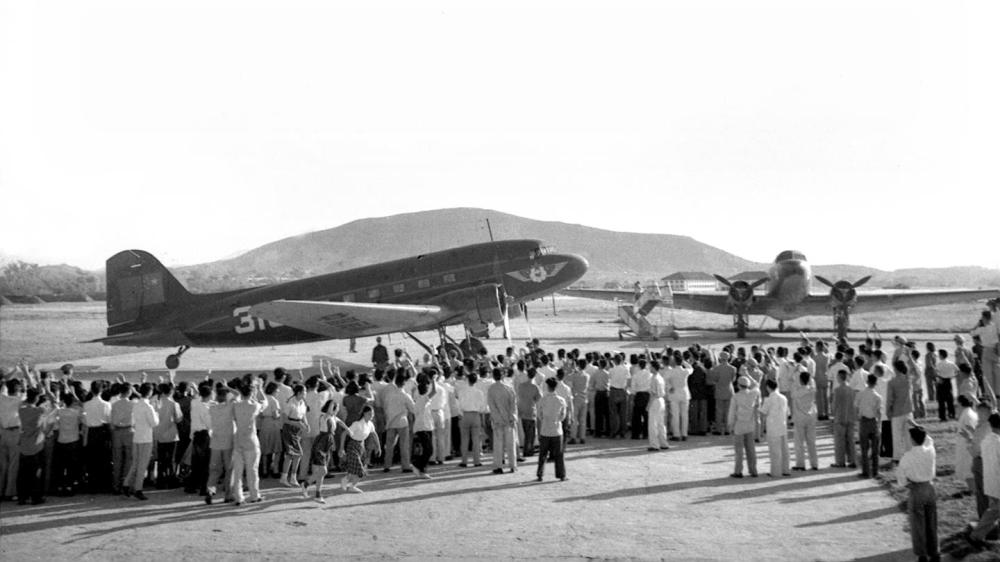 1956年4月24日,從中國廣州經(jīng)南寧至越南河內(nèi)的民用航線正式通航。這是首航飛機準備起飛。