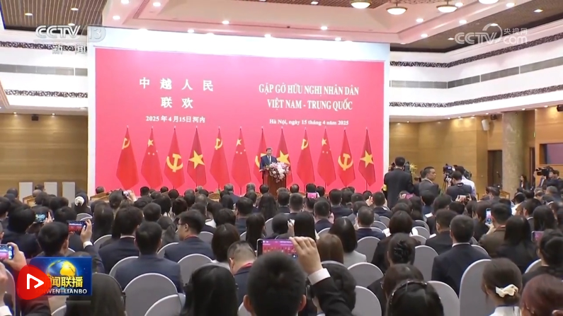 4月15日上午,中共中央總書記、國家主席習近平在河內(nèi)國際會議中心同越共中央總書記蘇林、越南國家主席梁強共同會見中越人民大聯(lián)歡活動代表。