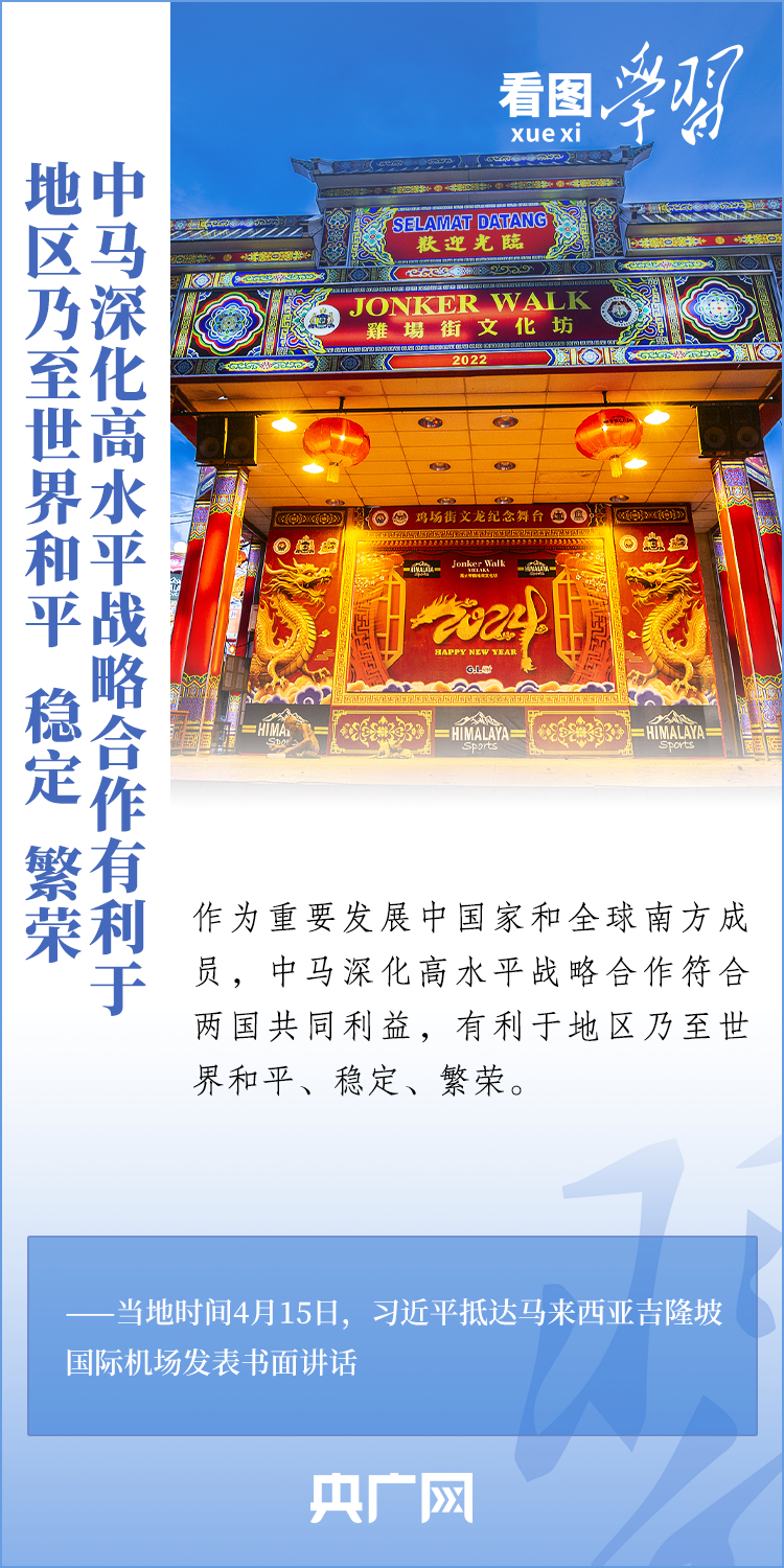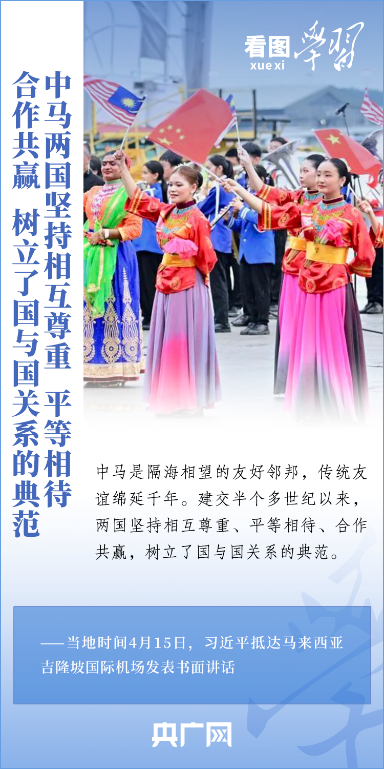 “中國和馬來西亞是好鄰居、好朋友、好伙伴,常來常往、親如一家。”4月15日至17日,國家主席習(xí)近平應(yīng)邀對馬來西亞進行國事訪問。訪問期間,習(xí)主席高度評價中馬關(guān)系,就共同打造高水平戰(zhàn)略性中馬命運共同體,譜寫睦鄰友好、團結(jié)合作新篇章,開啟中馬關(guān)系新的“黃金50年”擘畫藍圖和愿景。一起來學(xué)習(xí)!