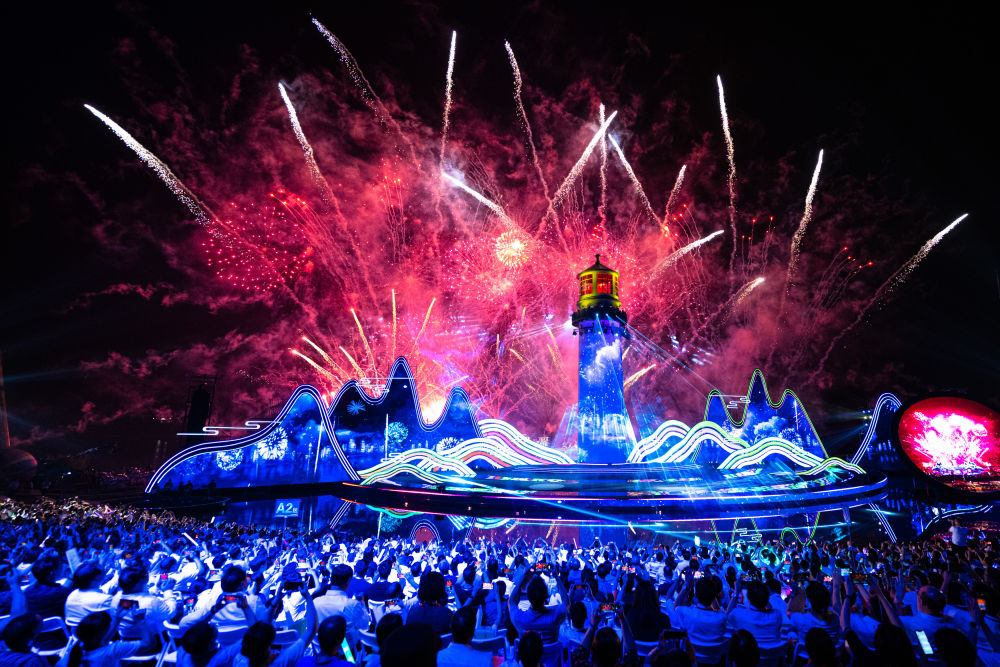 2023年9月16日,第十四屆中國長江三峽國際旅游節(jié)在湖北宜昌市燈塔廣場開幕,這是觀眾在開幕式現(xiàn)場觀看表演。生態(tài)搭臺、文旅唱戲,長江三峽國際旅游節(jié)是近些年三峽庫區(qū)把綠水青山轉變成“金山銀山”的生動寫照。