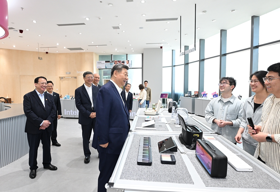 4月29日,中共中央總書(shū)記、國(guó)家主席、中央軍委主席習(xí)近平在上??疾?。這是習(xí)近平在位于徐匯區(qū)的上?!澳K倏臻g”大模型創(chuàng)新生態(tài)社區(qū)考察。