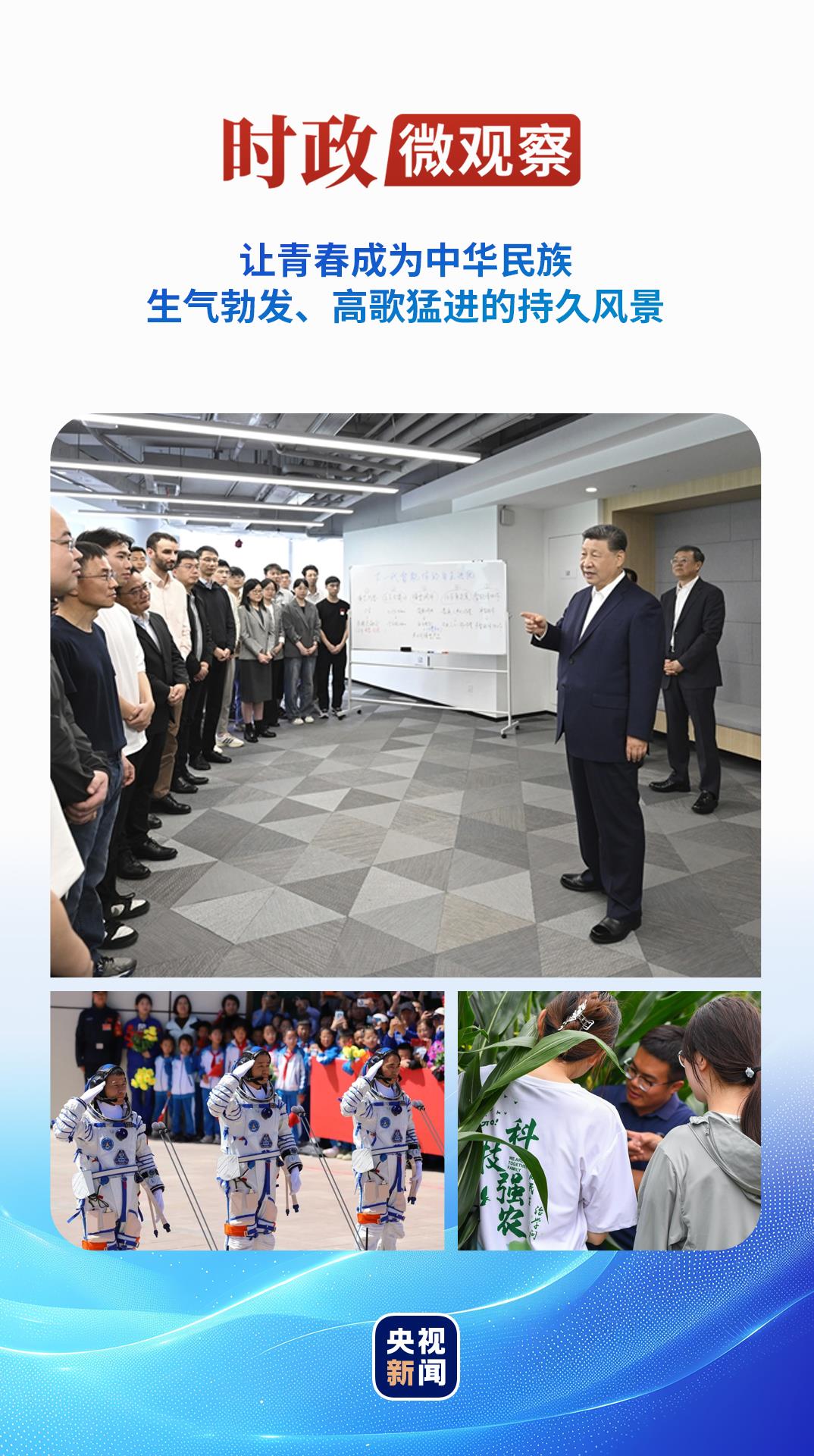 今年五四青年節(jié)前,習(xí)近平總書記再次來(lái)到年輕人中間。4月29日,在上海“模速空間”大模型創(chuàng)新生態(tài)社區(qū),總書記同青年創(chuàng)新人才親切交流,勉勵(lì)大家“把個(gè)人奮斗同國(guó)家前途命運(yùn)緊緊聯(lián)系在一起,跑好歷史的接力棒,在推進(jìn)中國(guó)式現(xiàn)代化的寬廣舞臺(tái)上綻放絢麗的青春光彩”。