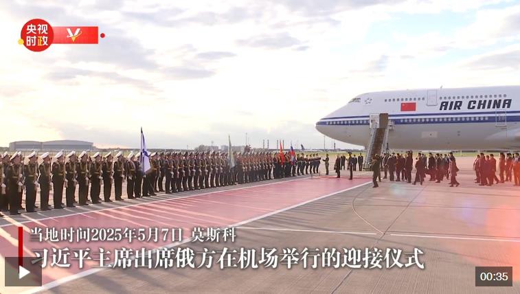 當(dāng)?shù)貢r間5月7日晚,國家主席習(xí)近平乘專機(jī)抵達(dá)莫斯科,應(yīng)俄羅斯總統(tǒng)普京邀請,對俄羅斯進(jìn)行國事訪問并出席紀(jì)念蘇聯(lián)偉大衛(wèi)國戰(zhàn)爭勝利80周年慶典。