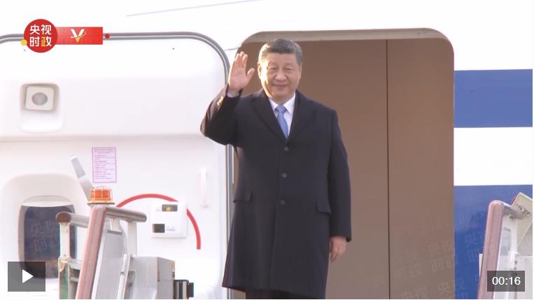 蔡奇、王毅等陪同人員同機(jī)抵達(dá)。