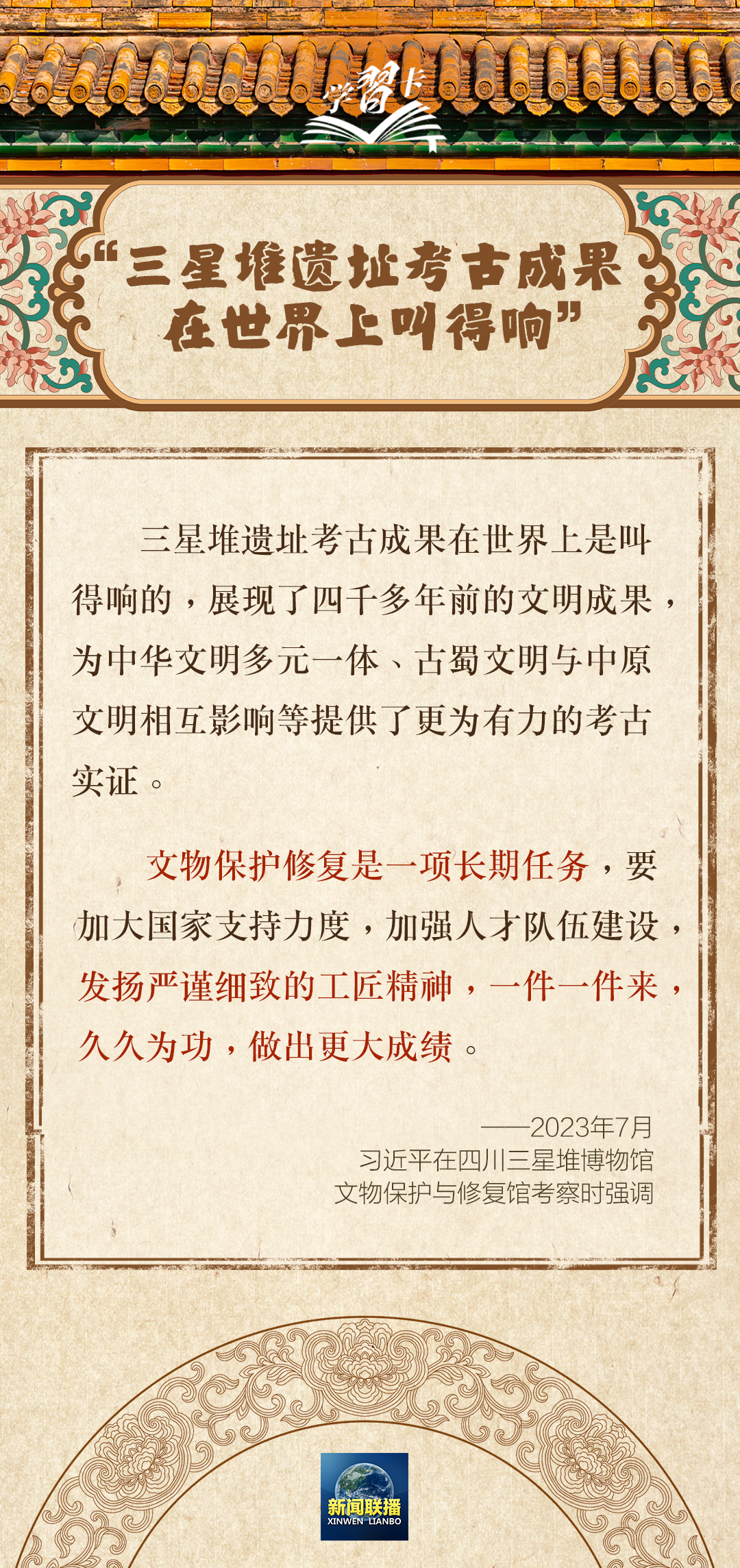 習(xí)近平總書記一直高度重視博物館工作,經(jīng)?!按蚩ā辈┪镳^,察看具有濃郁文化色彩的展品,對(duì)文物保護(hù)和文化傳承工作作出重要部署。