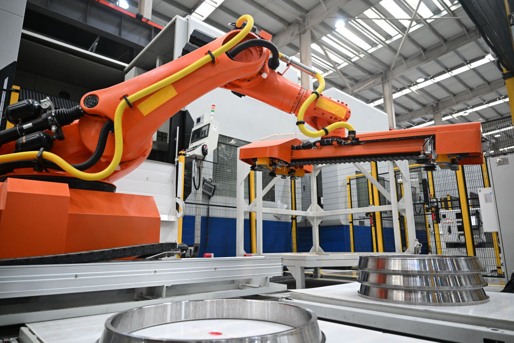 近日,工人在洛陽軸承集團股份有限公司的智能生產(chǎn)線上作業(yè)。新華社記者 李嘉南 攝