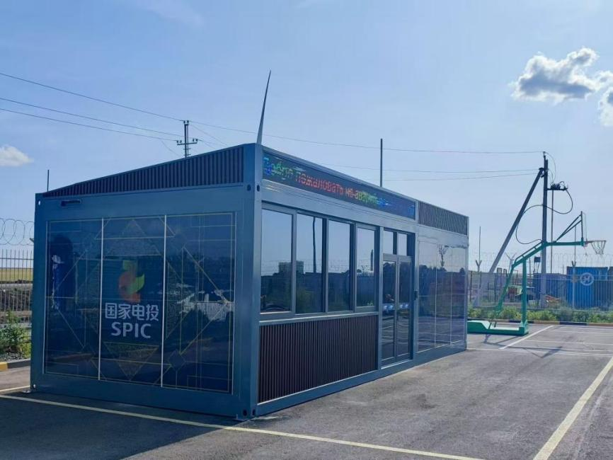 國家電投哈薩克斯坦能源投資公司阿克莫拉項目部負(fù)責(zé)人蔡慧勇介紹安全小屋和項目整體情況。本報記者 李洋 攝