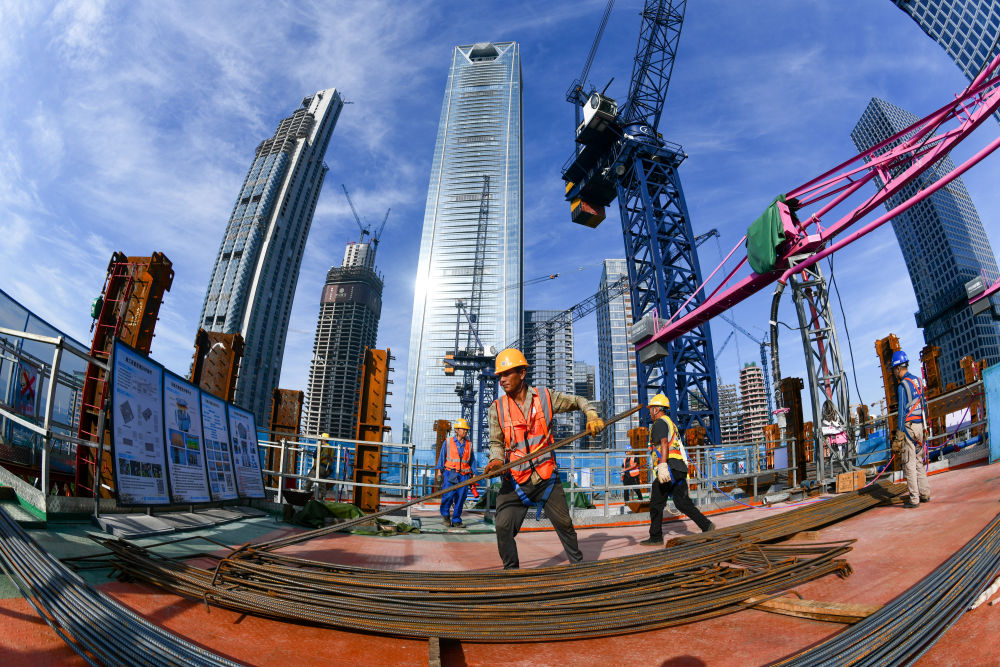 2024年10月3日,中建五局的建設(shè)者在深圳灣超級總部基地C塔項目建設(shè)現(xiàn)場施工。新華社記者 梁旭 攝