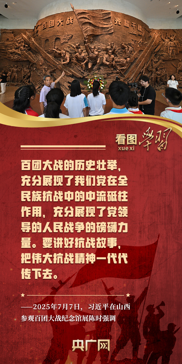 “要講好抗戰(zhàn)故事,把偉大抗戰(zhàn)精神一代代傳下去?!秉h的十八大以來,習(xí)近平總書記在地方考察調(diào)研時(shí),多次到具有重大歷史意義的革命圣地、紅色舊址、歷史紀(jì)念場所等緬懷革命先烈,重溫崢嶸歲月,深刻闡釋歷史啟迪。今年是中國人民抗日戰(zhàn)爭暨世界反法西斯戰(zhàn)爭勝利80周年,《看圖學(xué)習(xí)》邀您一起跟隨總書記的腳步,共同緬懷抗戰(zhàn)先烈的豐功偉績,繼承和弘揚(yáng)偉大抗戰(zhàn)精神,為強(qiáng)國建設(shè)、民族復(fù)興作出我們的新貢獻(xiàn)。
