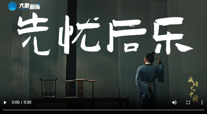 《文脈華章|成語(yǔ)里的中國(guó):先憂(yōu)后樂(lè)》詳細(xì)解讀“先天下之憂(yōu)而憂(yōu),后天下之樂(lè)而樂(lè)”的淵源、內(nèi)涵、時(shí)代意義,我們一起感悟總書(shū)記反復(fù)強(qiáng)調(diào)這句話(huà)的深意。