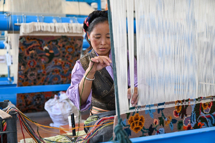 2025年7月18日,江孜藏毯文化發(fā)展有限責(zé)任公司的員工在生產(chǎn)車(chē)間內(nèi)編織藏毯。西藏日喀則市江孜縣是著名的藏毯(藏族稱(chēng)為“卡墊”)之鄉(xiāng),織毯歷史悠久。藏族卡墊織造技藝于2006年被列入國(guó)家級(jí)非物質(zhì)文化遺產(chǎn)代表性項(xiàng)目名錄。近年來(lái),江孜藏毯在守護(hù)傳統(tǒng)技藝的同時(shí)積極創(chuàng)新,通過(guò)建立合作社、開(kāi)辦技能培訓(xùn)班等方式擴(kuò)大靈活就業(yè)規(guī)模,讓更多人在家門(mén)口織藏毯增收。