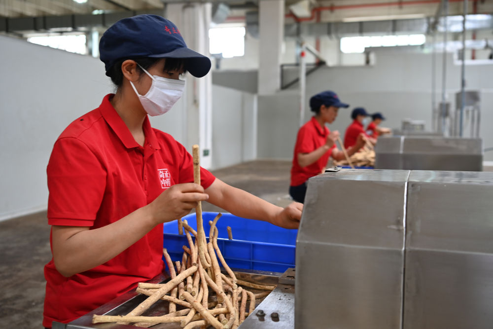 2024年7月23日,工人在甘肅定西隴西縣文峰鎮(zhèn)一家藥材企業(yè)加工中藥材切片。隴西中藥材種植歷史悠久,盛產300余種中藥材,是全國“道地藥材”的重要產區(qū)之一。近年來,當?shù)赝ㄟ^推行產地種植標準化、藥材加工精深化、原藥倉儲規(guī)模化、藥材交易市場化、質量監(jiān)測常態(tài)化、產業(yè)發(fā)展品牌化等改革創(chuàng)新舉措,推動中醫(yī)藥產業(yè)高質量發(fā)展。