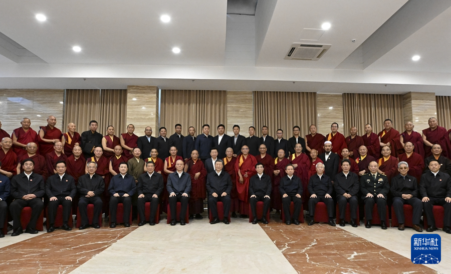 8月20日下午,中共中央總書記、國家主席、中央軍委主席習(xí)近平在拉薩親切接見西藏自治區(qū)宗教界愛國人士和寺管會干部代表,并同大家合影留念。新華社記者 李響 攝