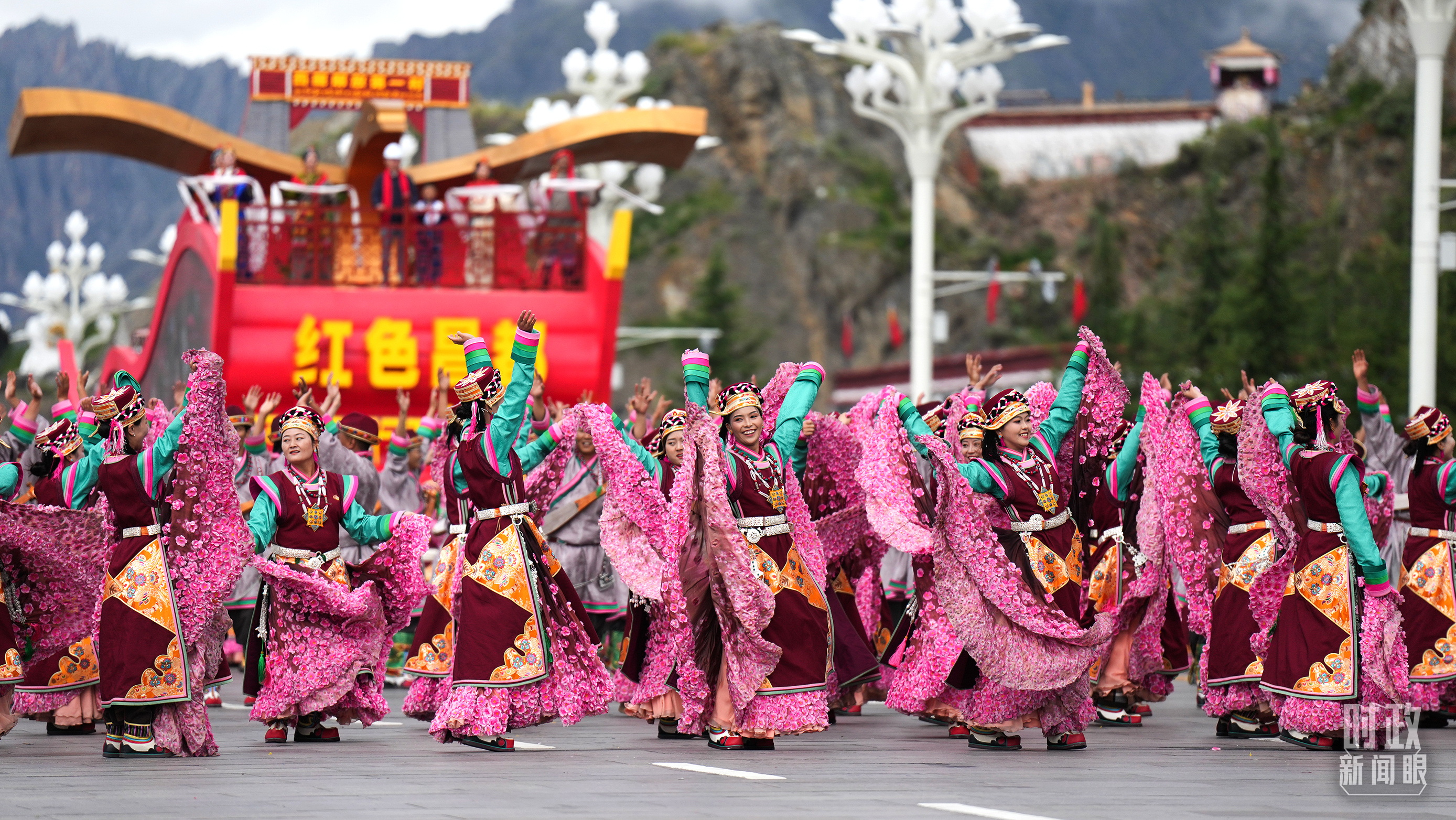 六十載櫛風(fēng)沐雨,一甲子滄海桑田。格?;êH何柚?,悠揚(yáng)的扎念琴聲響起,雄渾的甲諧舞、瓊結(jié)卓舞、弦子舞、鍋莊舞、普蘭宣舞應(yīng)接不暇,舞出西藏繁榮發(fā)展的精氣神。身穿工布服飾、飛天服飾等藏族特有服飾的游行群眾,以一場非物質(zhì)文化遺產(chǎn)的盛宴向西藏自治區(qū)成立60周年獻(xiàn)禮。