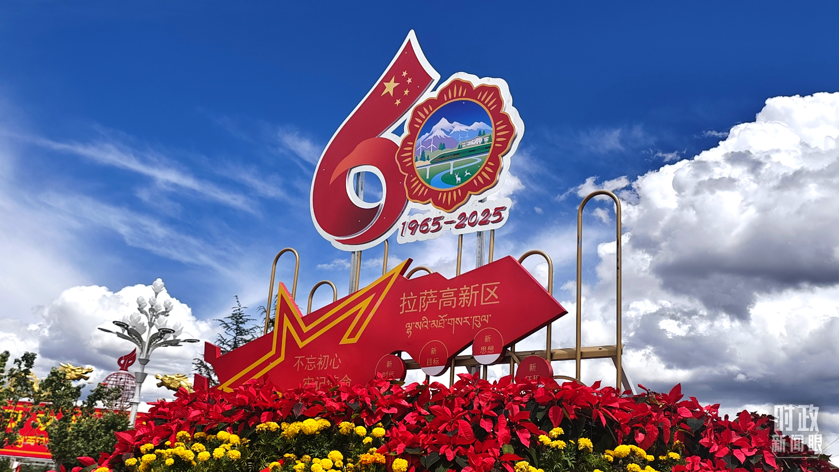 西藏自治區(qū)成立60周年標(biāo)識。(總臺央視記者韓銳拍攝)
