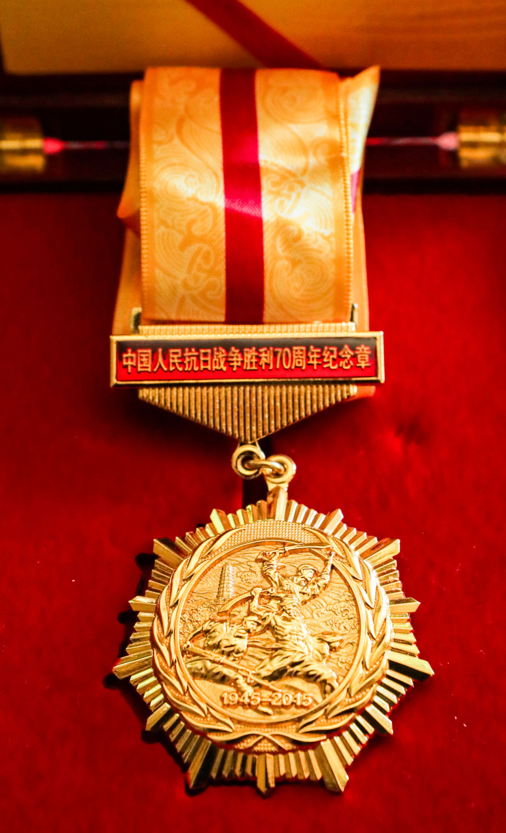 這是8月7日在德國海德堡約翰·拉貝交流中心拍攝的“中國人民抗日戰(zhàn)爭勝利70周年”紀(jì)念章。新華社記者 張帆 攝