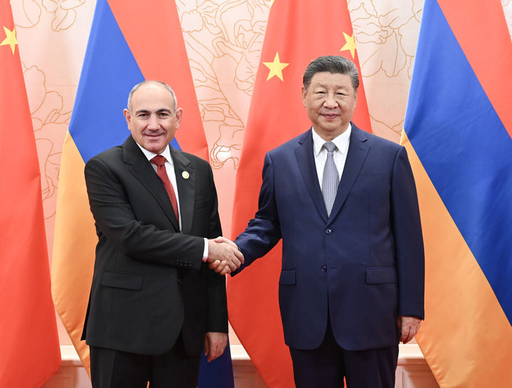8月31日上午,國(guó)家主席習(xí)近平在天津迎賓館會(huì)見來華出席2025年上海合作組織峰會(huì)和紀(jì)念中國(guó)人民抗日戰(zhàn)爭(zhēng)暨世界反法西斯戰(zhàn)爭(zhēng)勝利80周年活動(dòng)的亞美尼亞總理帕什尼揚(yáng)。兩國(guó)領(lǐng)導(dǎo)人宣布,中國(guó)和亞美尼亞建立戰(zhàn)略伙伴關(guān)系。