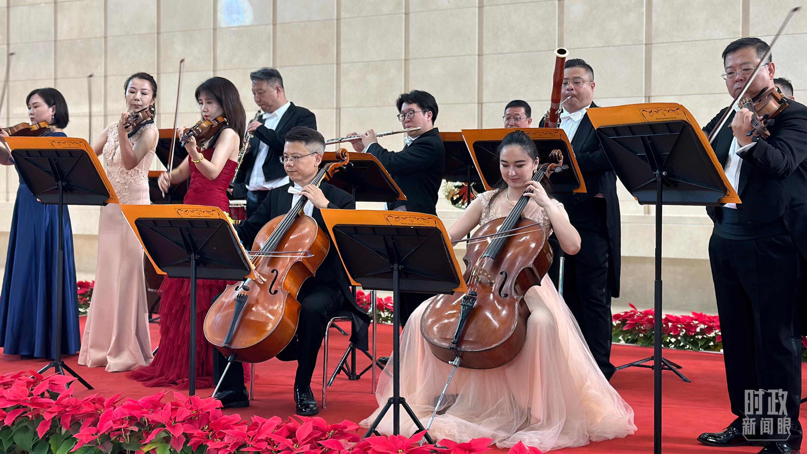 天津交響樂團(tuán)演奏與會各國知名樂曲。(總臺央視記者盧心雨拍攝)