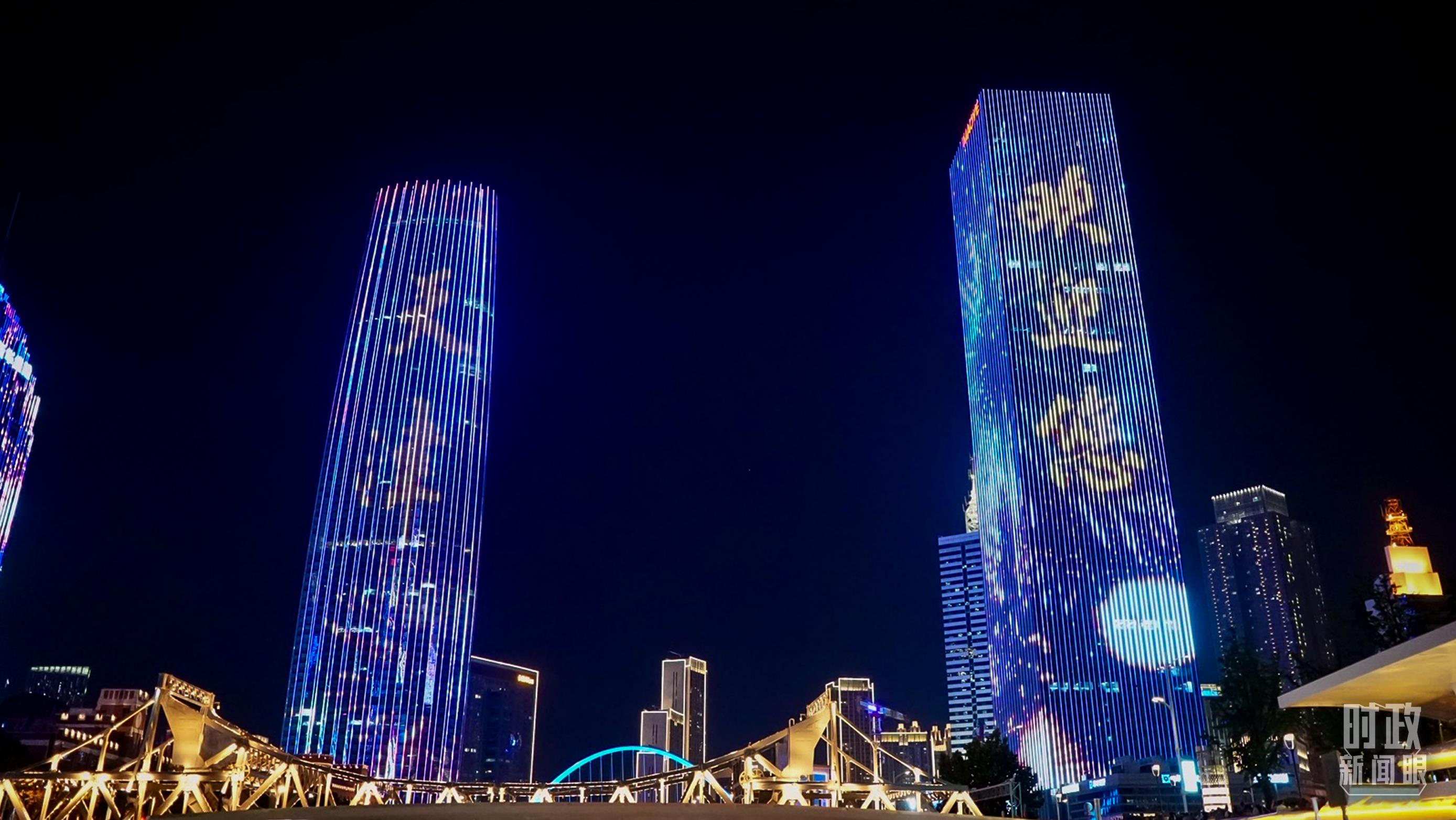 天津海河夜景。(總臺央視記者張宇拍攝)