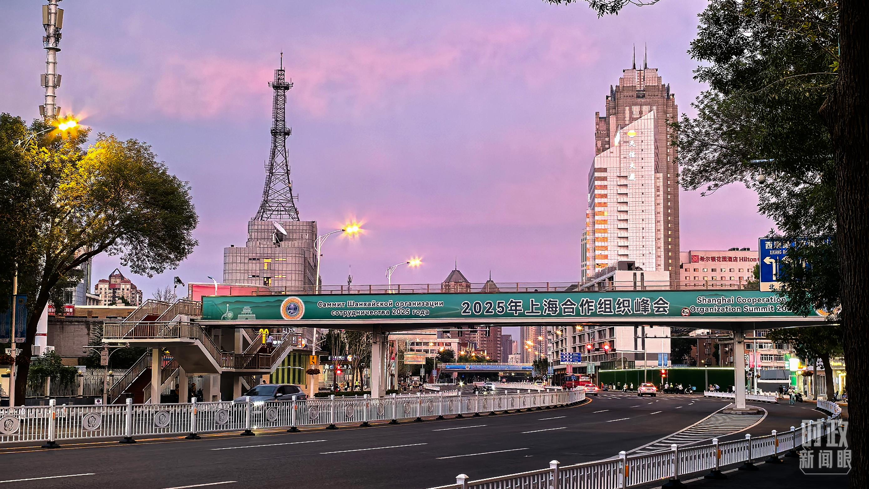 天津街頭的上合峰會條幅。(總臺記者孫強(qiáng)拍攝)