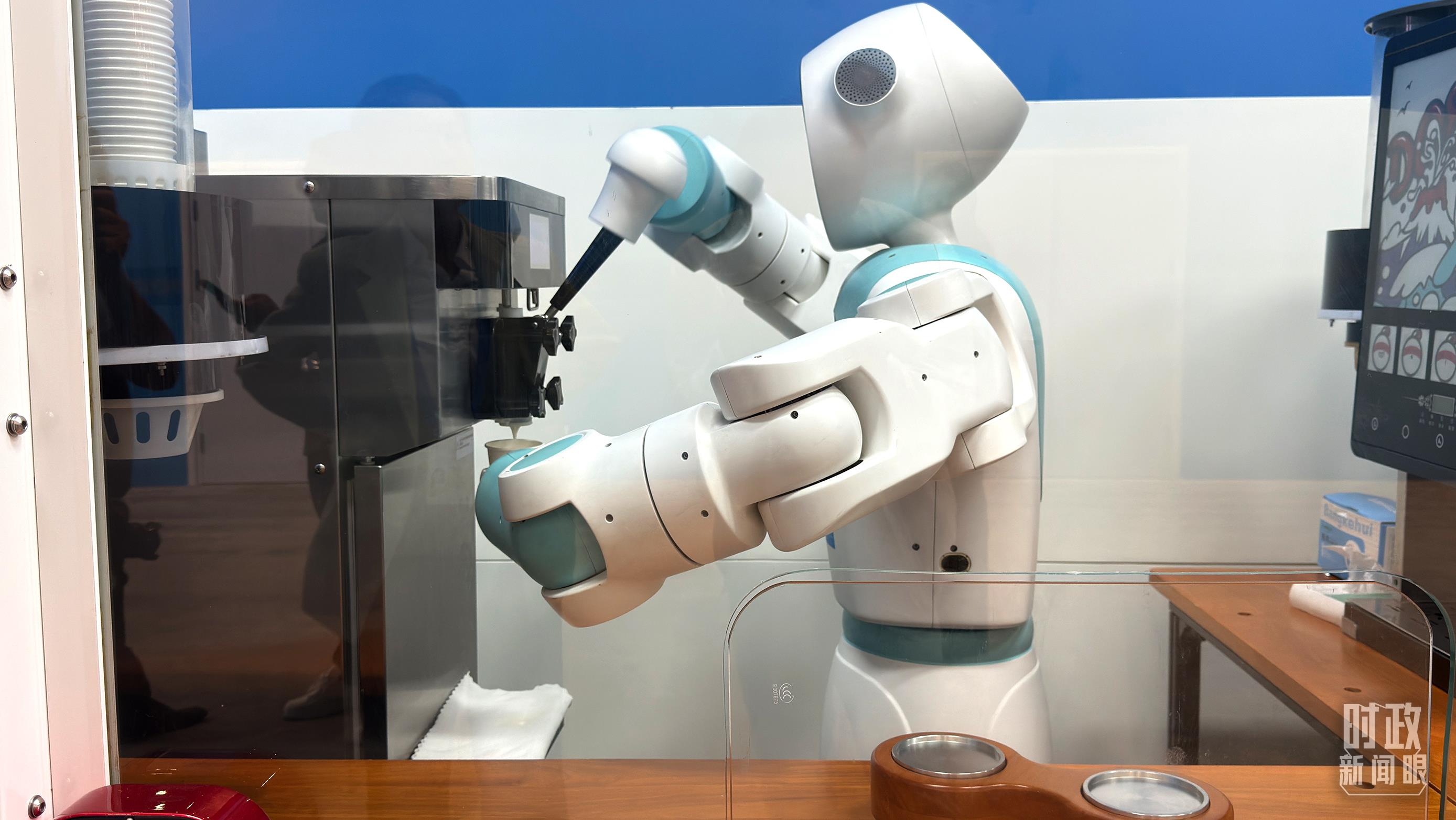 峰會新聞中心的智能機(jī)器人正在制作冰淇淋。(總臺央廣記者張永鵬拍攝)