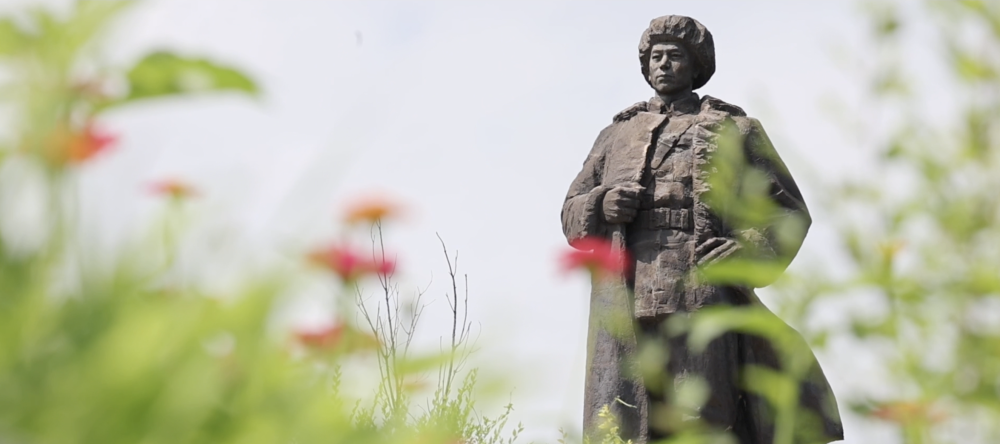 簇擁著將軍的雕像