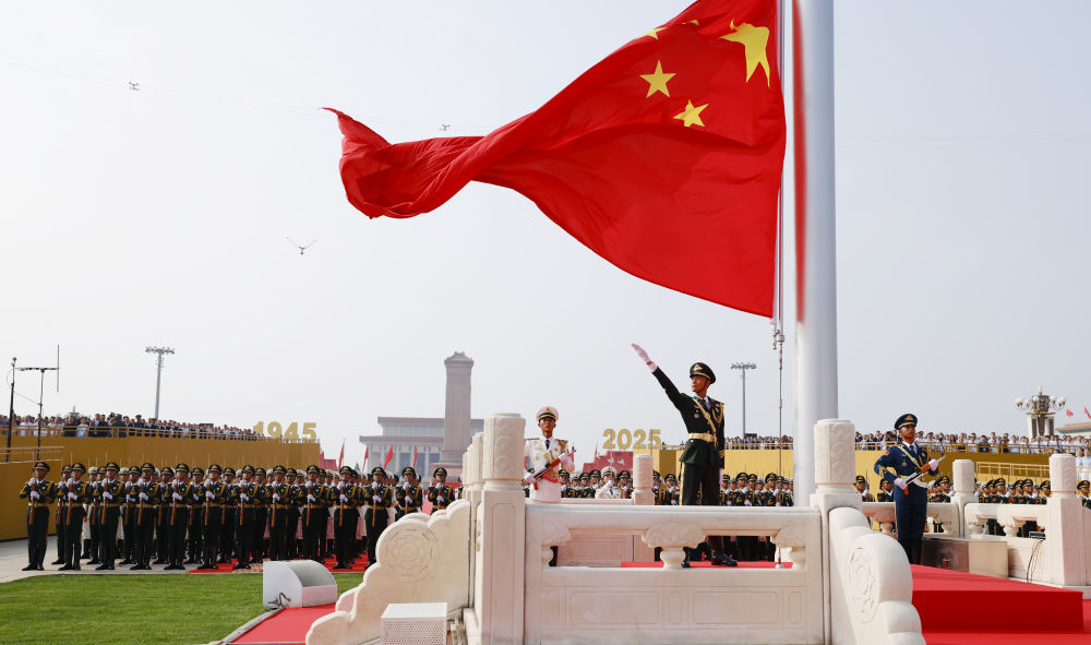 2025年9月3日,紀念中國人民抗日戰(zhàn)爭暨世界反法西斯戰(zhàn)爭勝利80周年大會在北京隆重舉行。這是天安門廣場舉行隆重的升國旗儀式。