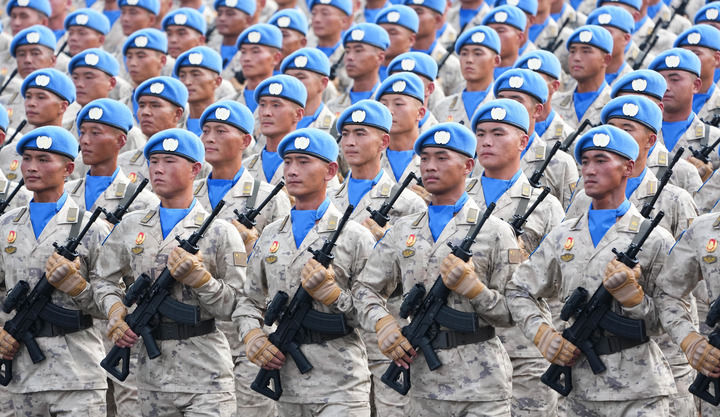 2025年9月3日,紀(jì)念中國(guó)人民抗日戰(zhàn)爭(zhēng)暨世界反法西斯戰(zhàn)爭(zhēng)勝利80周年大會(huì)在北京隆重舉行。這是維和部隊(duì)方隊(duì)接受檢閱。