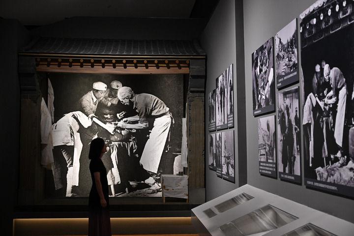 2025年9月7日,在中國(guó)國(guó)家博物館,一名媒體人員觀看白求恩的照片。