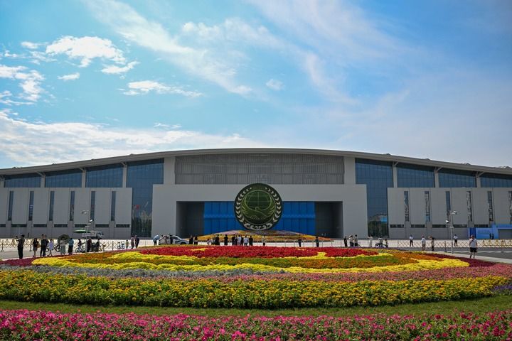 這是2025年9月1日拍攝的天津梅江會(huì)展中心外的花壇。
