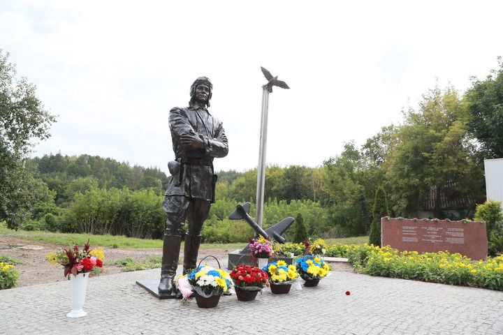烏克蘭第聶伯河沿岸,秋日的陽光灑在庫里申科學(xué)校對(duì)面的廣場(chǎng)上。身著飛行服的蘇聯(lián)空軍志愿隊(duì)重型轟炸機(jī)大隊(duì)少校大隊(duì)長庫里申科的雕塑目視遠(yuǎn)方,在他身邊,一只銅制“蘇聯(lián)雄鷹”展翅翱翔。
