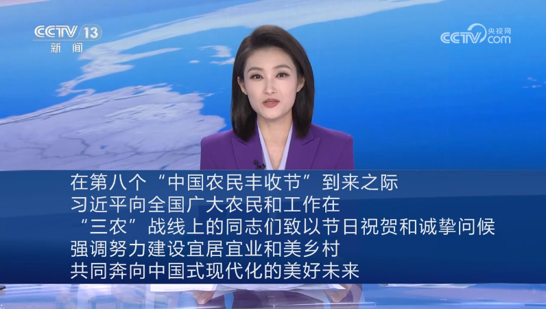 “希望廣大農(nóng)民群眾充分發(fā)揮主動(dòng)性創(chuàng)造性,社會(huì)各界積極支持參與,努力建設(shè)宜居宜業(yè)和美鄉(xiāng)村,共同奔向中國(guó)式現(xiàn)代化的美好未來(lái)?!痹诘诎藗€(gè)“中國(guó)農(nóng)民豐收節(jié)”到來(lái)之際,習(xí)近平總書(shū)記向全國(guó)廣大農(nóng)民和工作在“三農(nóng)”戰(zhàn)線上的同志們致以節(jié)日祝賀和誠(chéng)摯問(wèn)候。