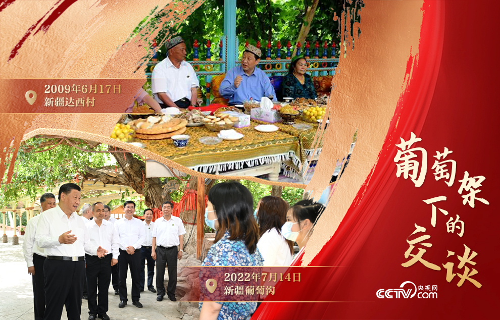 兩次“葡萄架下的交談”,相隔十余年,不變的是人民至上的深厚情懷。