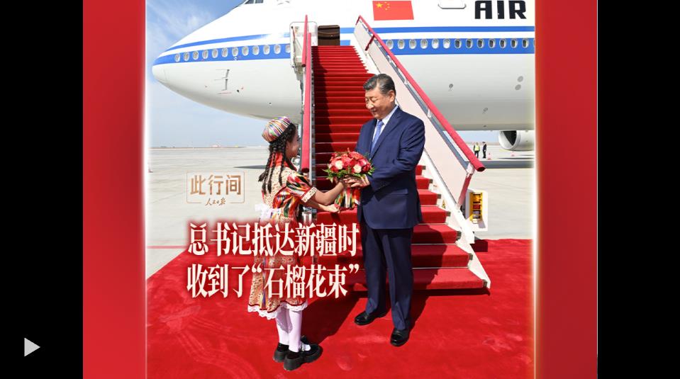 習近平率中央代表團23日下午乘專機抵達烏魯木齊,出席新疆維吾爾自治區(qū)成立70周年慶?;顒樱陆髯迦罕娫跈C場熱烈歡迎??倳浭盏降幕ㄊ?,裝點了美麗的石榴。如今,“石榴籽”的妙喻為人熟知,民族團結(jié)觀念深入人心。