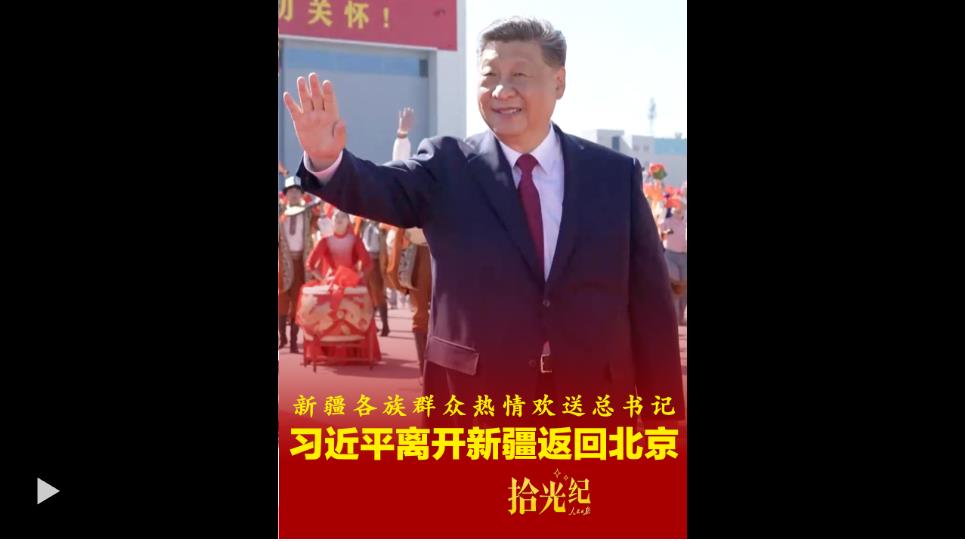 25日,習(xí)近平乘專機返回北京。烏魯木齊天山機場奏響別具特色的樂曲《我們在一起》,各族群眾載歌載舞熱情歡送總書記。