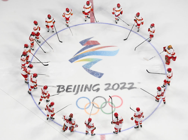 北京2022年冬奧會(huì)是迄今女性參賽比例最高、參與項(xiàng)目最多的一屆冬奧會(huì)。圖為中國國家女子冰球隊(duì)在賽場。