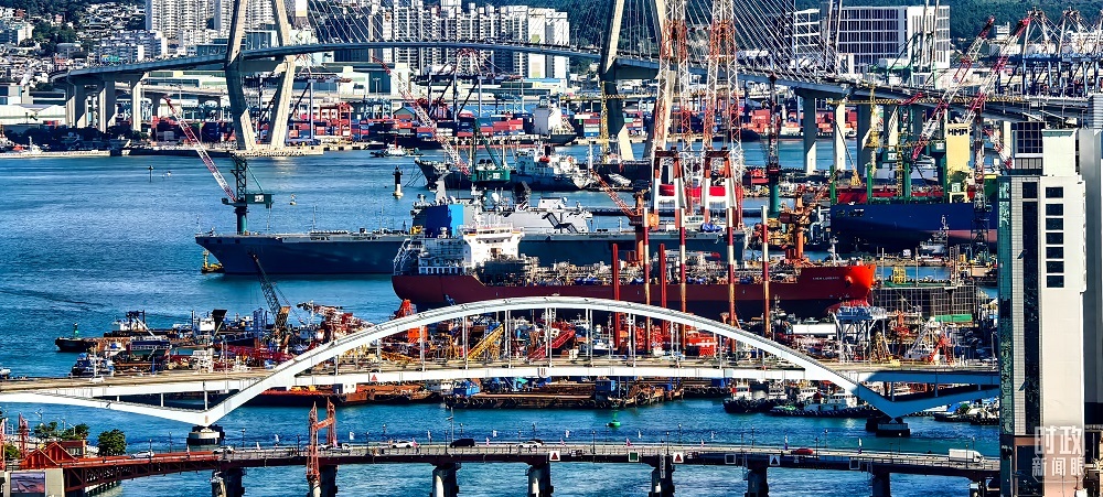 △韓國釜山繁忙的港口。(總臺央視記者陳漢章拍攝)