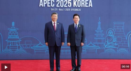 習(xí)近平主席抵達(dá)時(shí),韓國總統(tǒng)李在明熱情迎接。兩國元首握手、合影,留下珍貴的“APEC瞬間”。隨后,兩位領(lǐng)導(dǎo)人微笑交談,共同步入會(huì)場。
