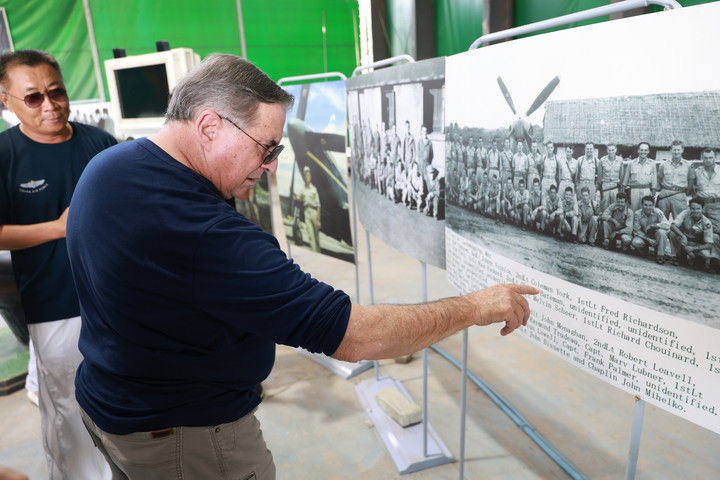 2025年7月16日,美中航空遺產(chǎn)基金會(huì)主席杰夫·格林在貴州黃平舊州機(jī)場(chǎng)查看飛虎隊(duì)資料照片??箲?zhàn)時(shí)期,舊州機(jī)場(chǎng)主要承擔(dān)飛機(jī)加油、彈藥補(bǔ)充和維修任務(wù)。常駐于此的美國(guó)飛虎隊(duì)?wèi)?zhàn)機(jī)頻頻在該機(jī)場(chǎng)起降,參加了湘西會(huì)戰(zhàn)、衡陽(yáng)保衛(wèi)戰(zhàn)等著名戰(zhàn)役。該機(jī)場(chǎng)見(jiàn)證了中美聯(lián)合反抗法西斯的光輝歷史,還為確?!榜劮搴骄€”的順利暢通發(fā)揮了舉足輕重的作用。
